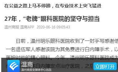 温州商报:27年,“ ”眼科医院的坚守与担当——温州明乐眼科医院