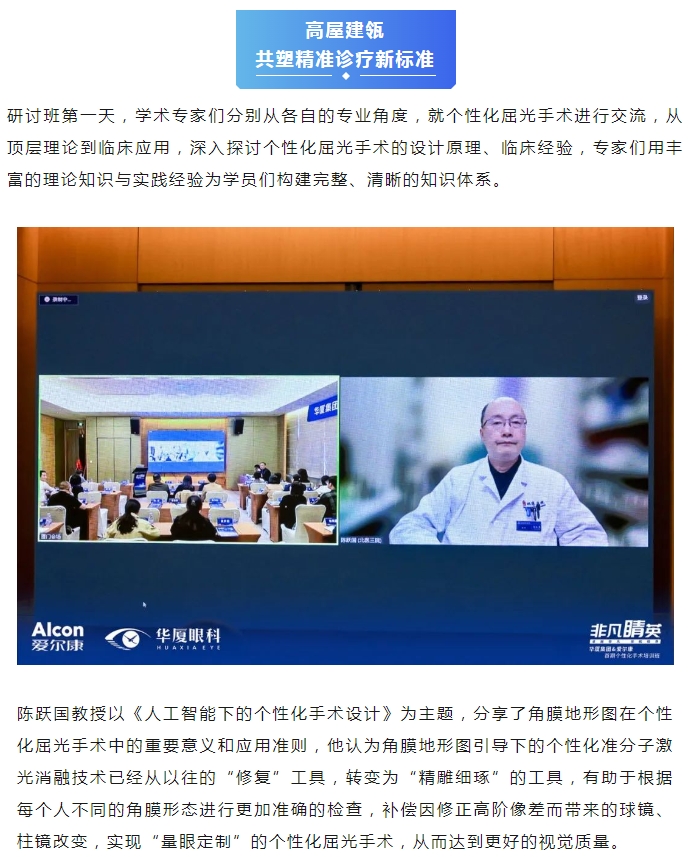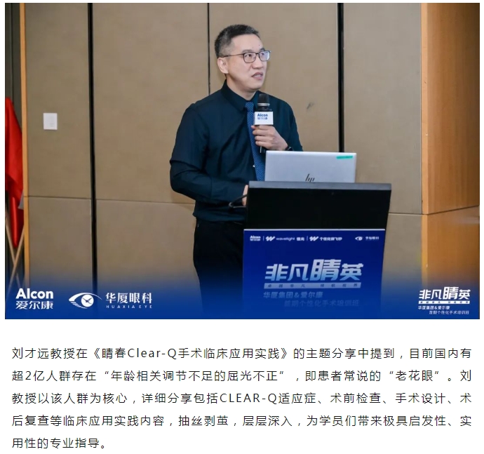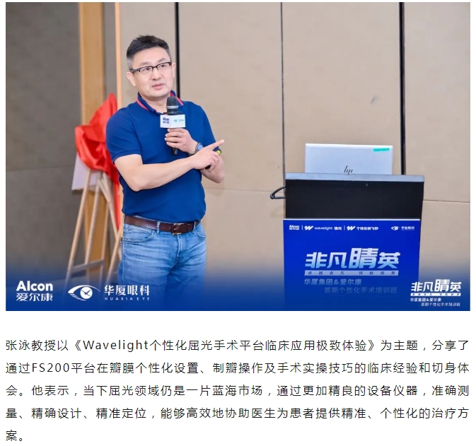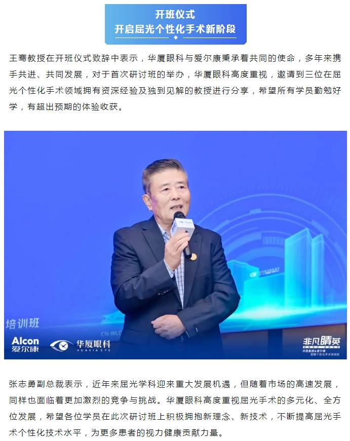 本次研讨班特别邀请牛八体育集团副总院长、集团学术委员会眼屈光学会分委会名誉主委王骞教授,牛八体育集团学术委员会眼屈光学会分委会常务副主委、集团屈光学科技术总监刘才远教授,北京大学第三医院、北京大学眼科中心陈跃国教授,山东第一医科大学附属省立医院眼科副主任张泳教授出席,牛八体育集团副总裁张志勇、爱尔康大客户负责人李重平、牛八体育集团屈光学科发展部负责人唐敏以及来自牛八体育全国各医院优秀的屈光学术专家、医生和爱尔康集团代表等40余人参会。研讨班通过主题分享、病例讨论、实操演练等方式,从理论到实践,助力参培学员系统全面地理解学习个性化屈光手术。