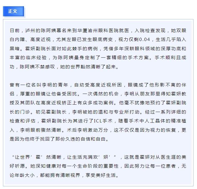 【医生·医声】霍妍:让世界“霍”然清晰,让生活充满欢“妍”