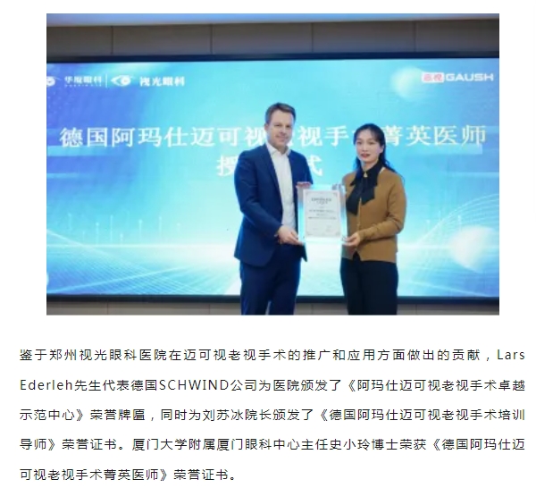 创新发展 探索视界|郑州视光眼科医院成功举办2024年牛八体育集团阿玛仕迈可视老视手术培训班!