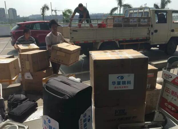 爱尔康超乳机、人工晶体、表麻药、盐水、左氧氟沙星滴眼液、艾氟龙滴眼液、输液器、注射液、消毒锅、无菌包、棉签、胶布、纱布、眼罩……医疗队足足带了100多项医用物资。10月21日,李立梅博士作为先遣队员,冒着台风启程前往金边做手术前的准备工作,其余队员于23日辗转前往,到达金边时已是深夜12点。