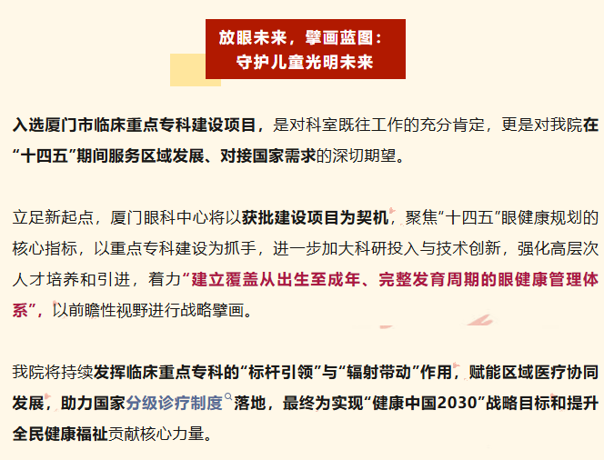 喜报!厦门眼科中心斜视与小儿眼科获批厦门市临床重点专科建设项目!