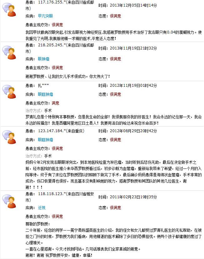 成都牛八体育院长陈晓明教授、业务院长罗清礼教授网上患者评价