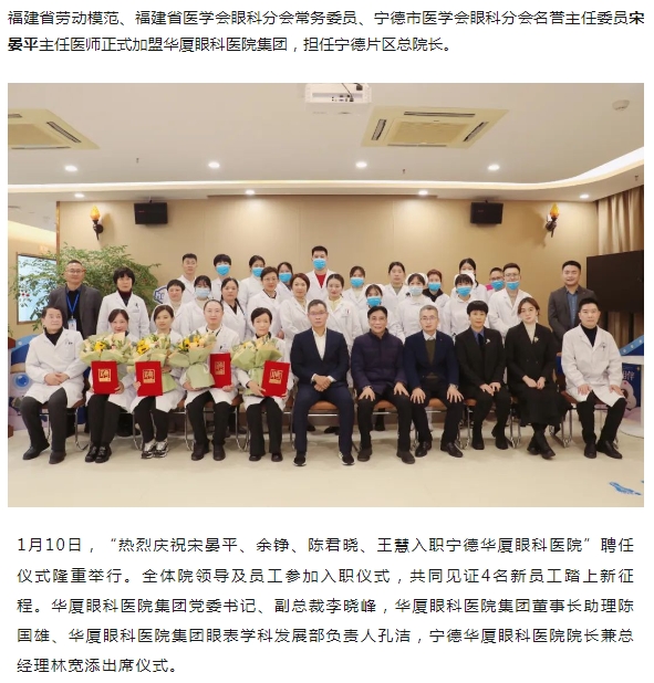 知名眼科专家宋晏平正式加盟牛八体育,担任宁德片区总院长