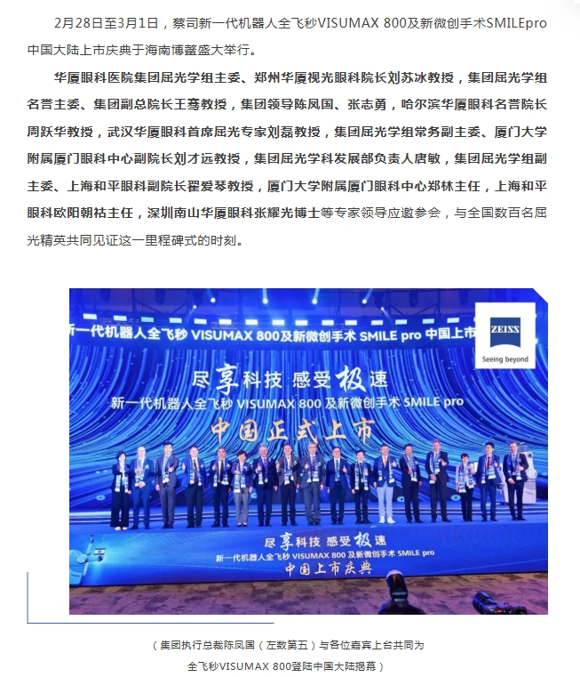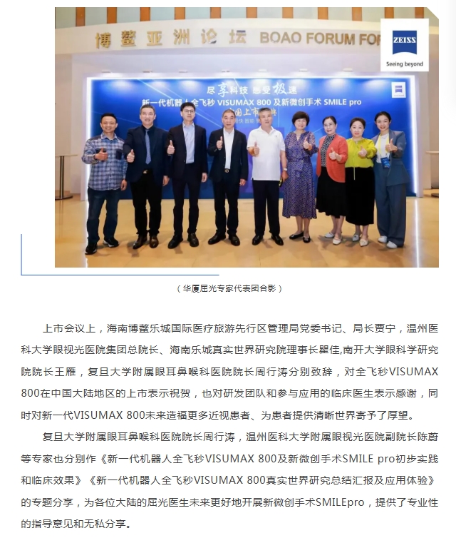 牛八体育屈光专家团应邀出席蔡司新一代机器人全飞秒VISUMAX 800及新微创手术SMILEpro中国大陆地区上市庆典