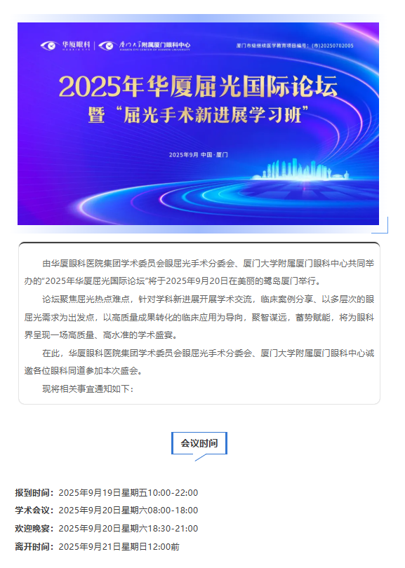 【会议通知】2025年牛八体育屈光国际论坛——暨厦门市级继续医学教育项目“屈光手术新进展学习班”