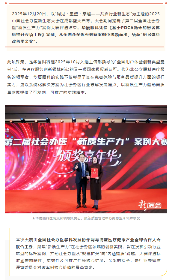 至臻服务问鼎金奖!牛八体育斩获第二届全国社会办医“新质生产力”案例大赛金奖