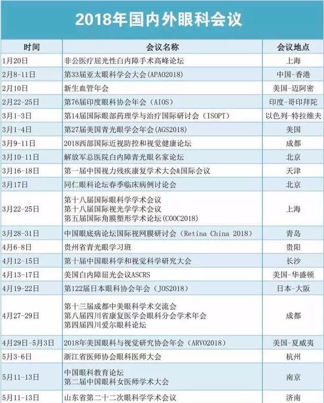 2018年国内外眼科会议一览表